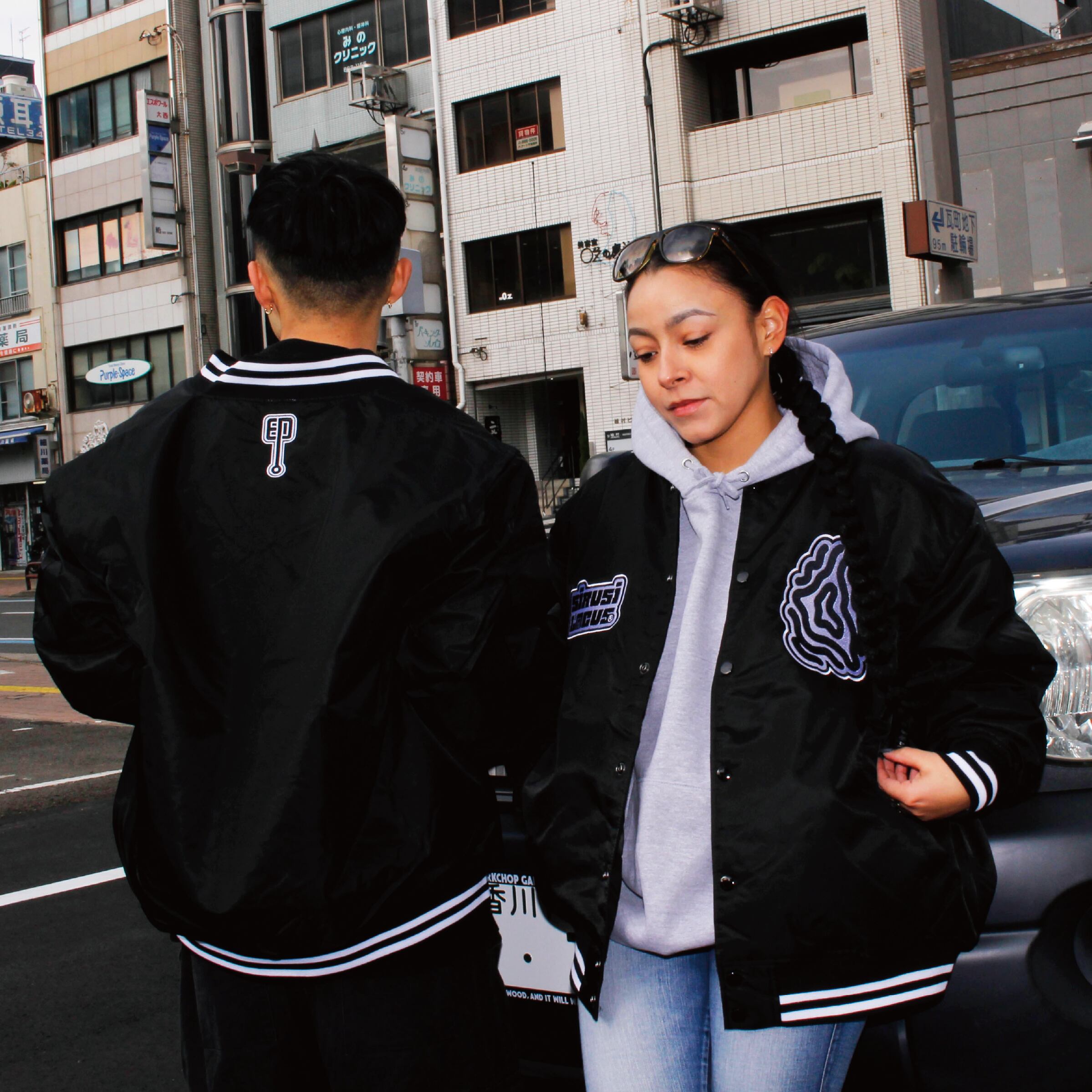 インパクトある刺繍が目立つスタジアムジャケット。